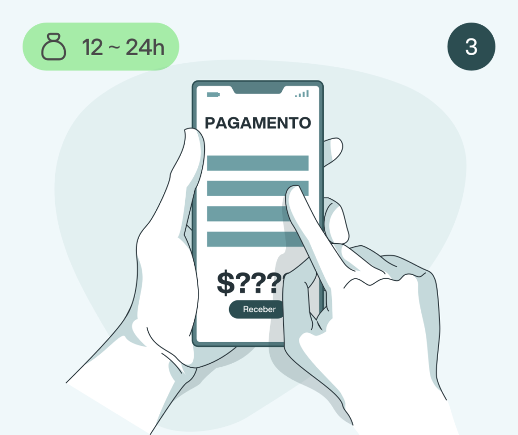 Após aprovação dos documentos, o dinheiro cai na sua conta em até 48 horas úteis.